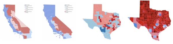 California (2024) Map Versus Predicted Texas map (2002, prior to 2003